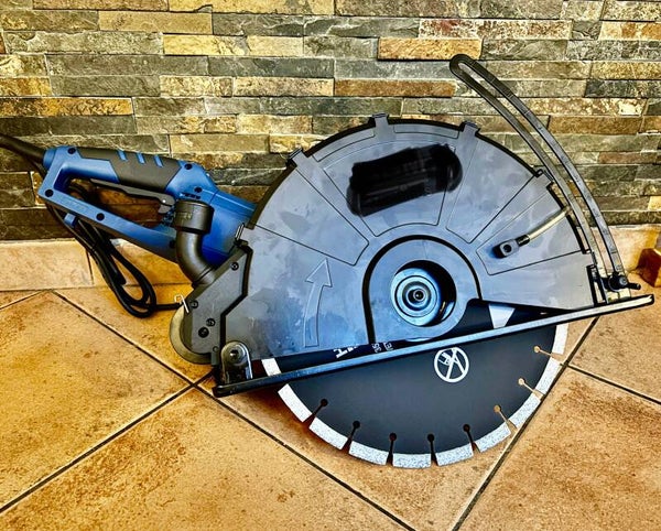 Mit der Diamanttrennscheibe mit einem Durchmesser von 350 mm werden Schnitttiefen von bis zu 115 mm erreicht, so dass Sie problemlos durch die Stärke einer Ziegel- oder Betonwand schneiden können!